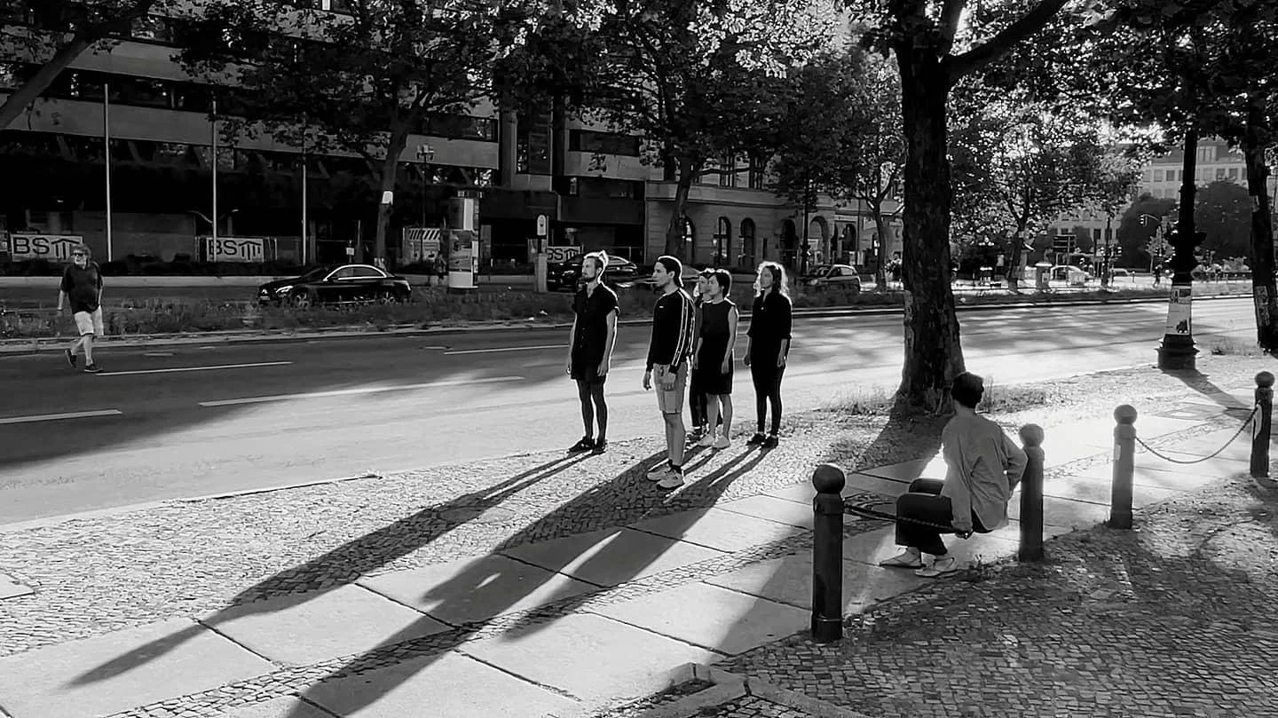 Inspired by The Society of the Spectacle by Guy Debord and the Situationist practice of derive (drifting), this video documents students from the Music and Movement study programme at the University of the Arts Berlin improvising for 40 minutes outside the UDK concert hall, located at the intersection of Hardenbergstrasse and Fasanenstrasse.